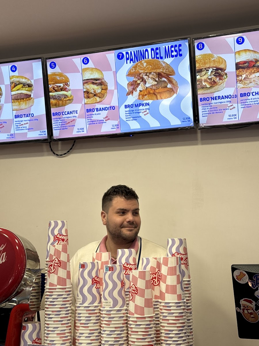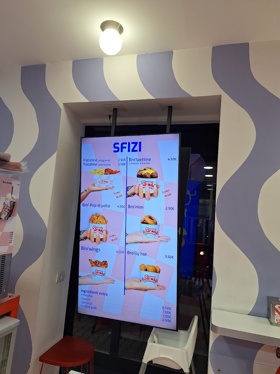 From a reviewer’s perspective, the menu at Royal Brothers, located on Via Nazionale Appia in Casagiove, feels like a confident and well-rounded conclusion to the brand’s bold street-food identity. The sweetness of Bro'sweet: Bro'Tella offers a playful finish, while the selection of sauces-from Mayo Heinz Bustine and Ketchup Heinz Bustine to Mayo Al Pepe, Mayo Biffi Bustine, and Salsa Burger-allows diners to personalize every bite. The customizable spirit continues with Componi Il Tuo Bro'smash: One Bro'Smash Cheese, a simple yet satisfying base for burger lovers. In the Sfizi section, snacks such as Bro'lpettine 10 Pz, Patatine Artigianali, Patatine Americane, Bro'nion 6pz, and Bro'pop 12 Pz deliver variety and comfort, while the Novità Bro'Stripes 3pz adds a fresh, modern touch. The burger lineup-Bro'llo, BRO’CCOLO, Bro'cchetta, Bro'lled 2.0, and Brotdog-anchors the menu with personality and creativity, clearly designed for those who appreciate indulgent flavors. To round everything off, the Bevande options, including Fanta Lattina 330 Ml, Coca-Cola Lattina 330 Ml, Coca-Cola Zero Lattina 330 Ml, Acqua Liscia 50 Cl, and Acqua Frizzante 50 Cl, keep the experience balanced and refreshing. Overall, the Royal Brothers menu feels cohesive and thoughtfully curated, making it a satisfying summary of comfort food done with character and consistency.